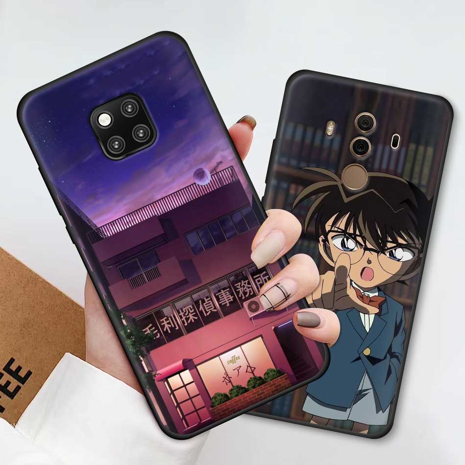 Black Silicone Phone Case For Huawei Mate 20 Pro 10 Lite P20 P30 Honor With Japanese Anime Detective Conan Design