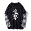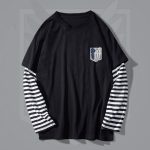 Attack On Titan Anime Levi Ackerman Mens Long Sleeve Striped Tshirt Oneck Black Red Tops