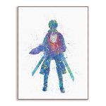 Crafted with a blend of vibrant colors, this watercolor artwork brings out the bold and dynamic characters of Attack on Titan. The poster is printed using waterproof ink on canvas, ensuring its lasting beauty and durability. It is a single, unframed and frameless piece shaped in a rectangle, designed to add a modern and minimalist appeal to any wall.