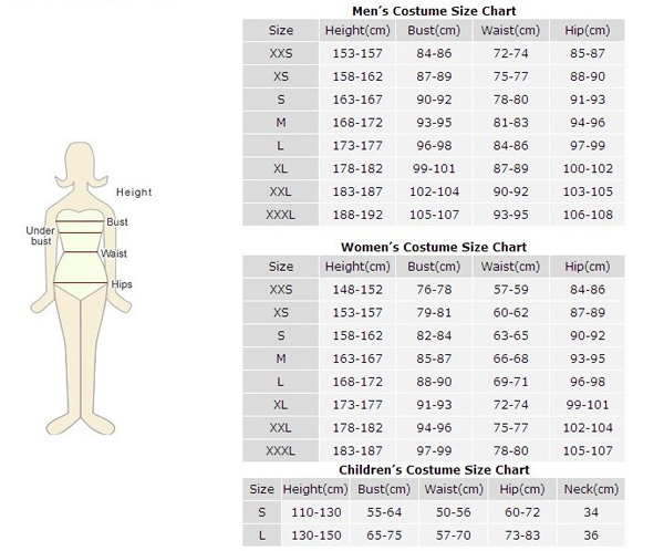 - Offering custom-made costumes to ensure the perfect fit. Simply provide your chest, waist, hip, and height measurements, and we’ll create a costume tailored to your size.
