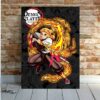Each poster depicts a unique scene from the popular Demon Slayer anime series, showcasing the stunning artistry of the show in a form that can be appreciated every day. The spray painting technique used to create these posters gives them a unique texture and depth, bringing the characters to life.