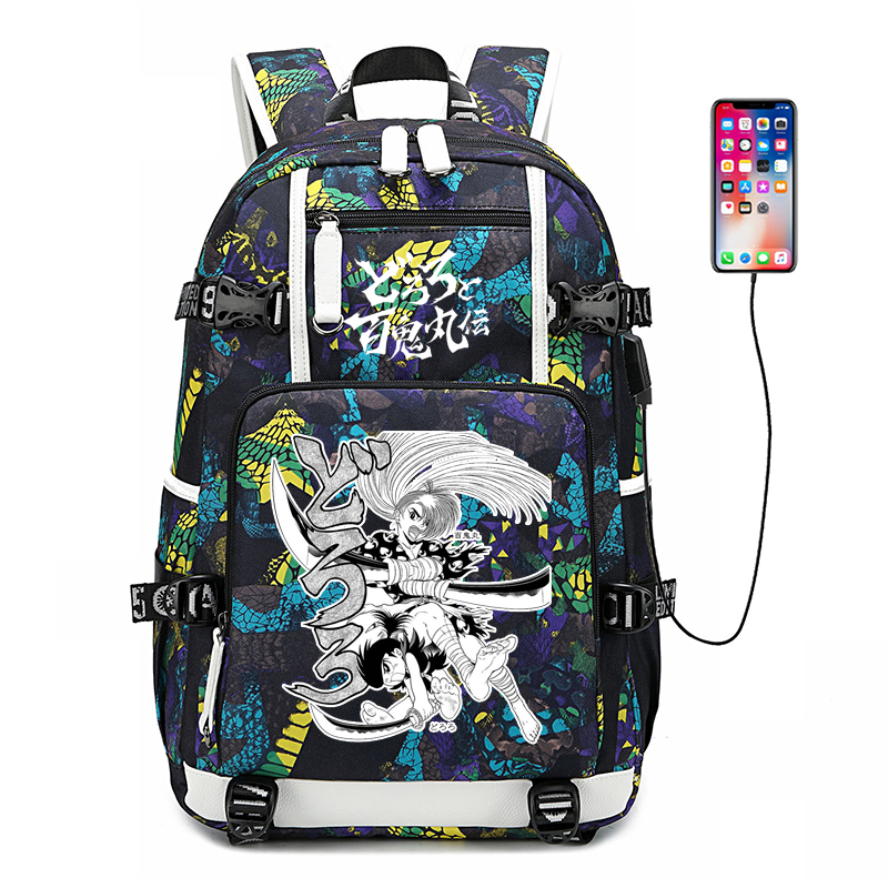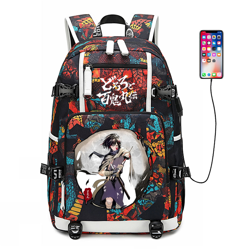 Dororo Hyakki Maru Anime Themed Large Canvas Backpack With Usb Charging Port Laptop Compartment Suitable For Teen Girls School Travel