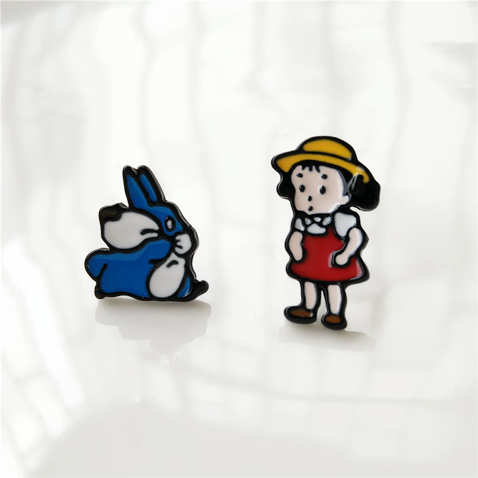 Mens Anime Inspired Hayao Miyazaki Chinchilla Earrings Colorful Dripping Oil Alloy Ear Studs Japanese Animation Jewelry
