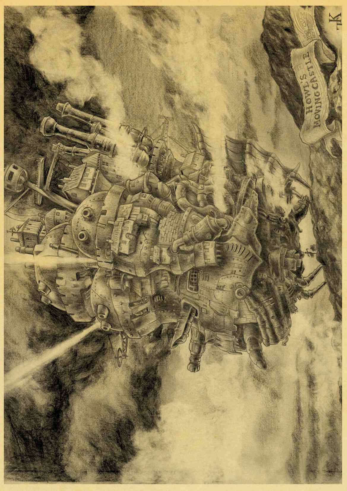 Hayao Miyazakis Howls Moving Castle Vintage Wall Decor Poster For Home Bar Cafe Retro Style