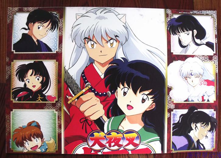 Inuyasha Anime 8 Piece Set Miroku Sango Kikyou Figures And 42x29cm Wall Posters For Anime Lovers