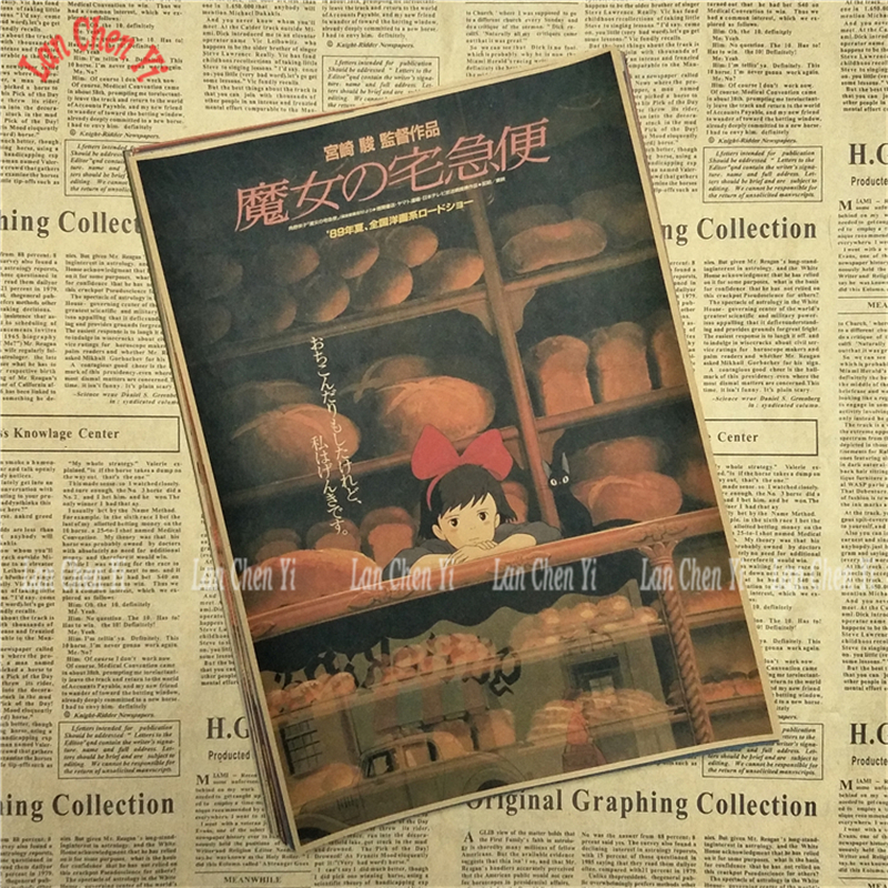 Hayao Miyazakis Kikis Service Kraft Paper Poster Vintage Anime Wall Art For Bar Cafe Home Decor