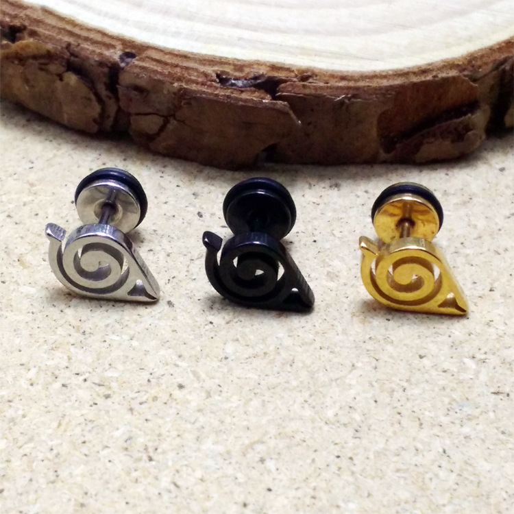 - Fashionable Stud Earrings: These Men’s Titanium Steel Naruto Anime Stud Earrings feature a fashionable hollow punk design in silver, gold, and black, making them a stylish addition to any outfit.