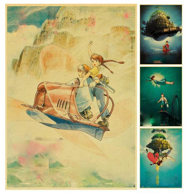 Vintage Miyazaki Hayao Laputa Castle Sky Animation Poster Retro Home Bar Kids Room Wall Decor