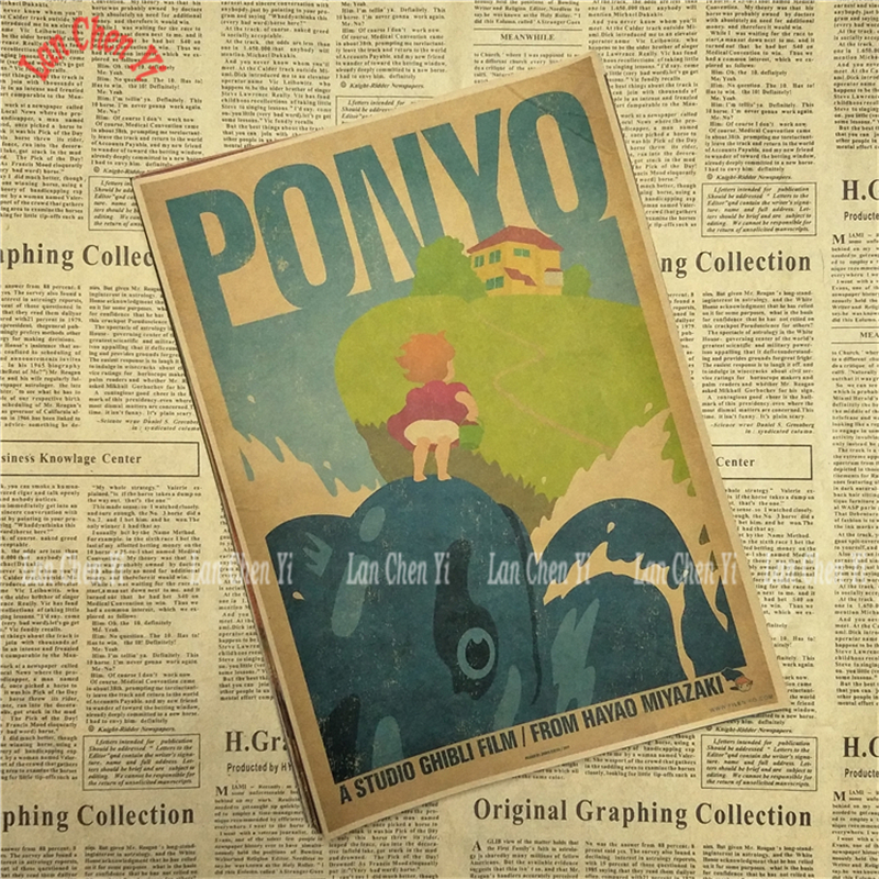 Miyazaki Hayaos Ponyo On The Cliff Cartoon Movie Kraft Paper Poster For Kids Room Cafe Living Room Dining Room Decor
