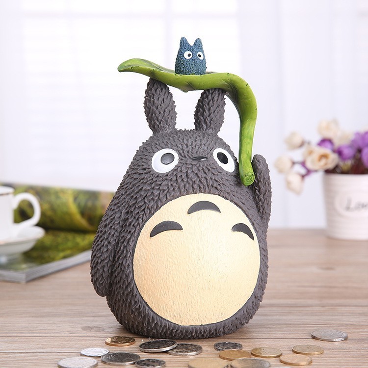 The Hayao Miyazakis My Neighbor Totoro Resin Action Figure Umbrella Leaf Doll Kids Toy Piggy Bank is a wonderful blend of fun and functionality, promising hours of imaginative play and a unique way to start saving.