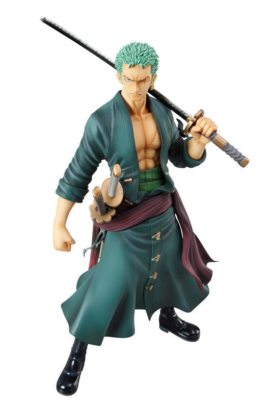 - Made from high-quality PVC material, this model showcases Zoro’s signature green hair and three-sword style, bringing a piece of the One Piece world to life.