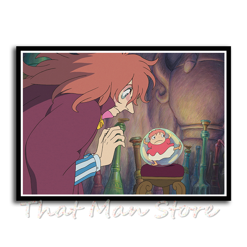 - This poster features the enchanting art from Hayao Miyazaki’s animated film, Ponyo On The Cliff, adding a splash of captivating animation to your home decor.