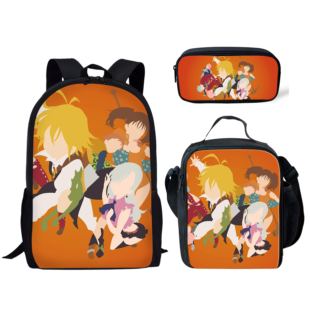 Thikin 3pcs School Backpack Set Seven Deadly Sins Theme Ideal For Boys Girls Kids Childrens Satchel